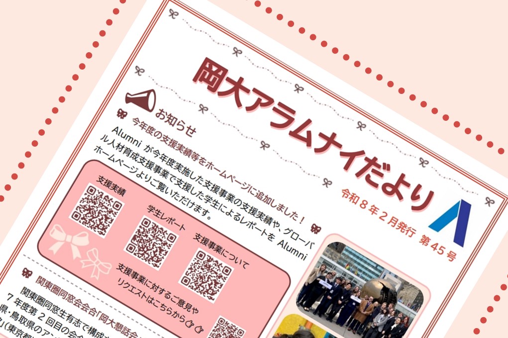 岡山大学Alumniでは、「同窓会活動(総会・交流会)の案内や実施報告」等について、同窓生や関係者のみなさまからの情報提供をお待ちしております。