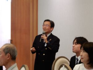 那須学長、伊藤茂彦Alumni(全学同窓会)東海支部幹事からの挨拶後、歓談がスタートし、参加者は旧友との再会や新たな交流を楽しまれていました。会の中盤では、那須学長から在学生の活躍を中心とした大学の近況報告があり、参加者からは大きな関心が寄せられました。また、若手同窓生と現役生6名からもそれぞれの近況について報告がありました。