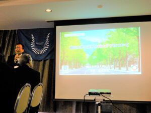岡山大学Alumni関西支部総会は、冒頭で全員が岡山大学学生歌を斉唱し、保智己代表幹事(理学部卒)の開会挨拶により和やかに始まりました。その後、那須保友岡山大学長、菅誠治岡山大学上席副学長、川本平山Alumni理事や、支部役員の紹介がありました。また、今般次世代ネットワークおよび情報処理基盤の実現を目指す国際フォーラムであるIOWN Global ForumからIOWNテクノロジーの進展に最も貢献したとして表彰された西本裕明氏(工学部卒)がご紹介されました。